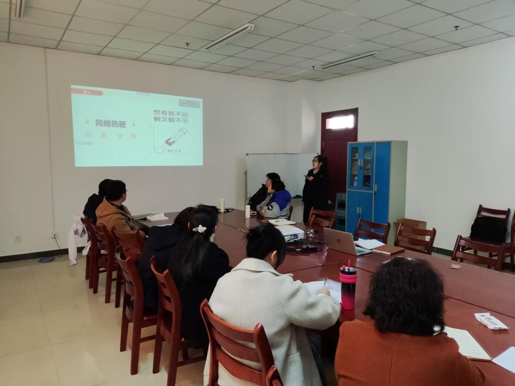 会议首先由赵晓静、张潇、张媛、孔浩四位新老师依次进行教学展示,他们分别围绕“中国共产党是中国最大的国情”、“爱党爱国爱社会主义是统一的”、“大学生应树立积极的人生态度”、“走进马克思”四个知识点展开设计、讲解和教学展示,随后张瑶老师对四位新老师的授课进行具体的点评和指导,她围绕教学逻辑的调整与设计、案例的精选与取舍、语言的组织与运用、PPT的制作与完善、理论深度与外在形式的比例调整等方面提出精准深刻的指导修改意见,让四位新老师明确了问题点和不足之处,也使全体教师深刻思考和受益匪浅。