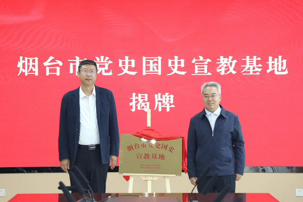李丕志、杨春涛共同为“烟台市党史国史宣教基地”和“山东中医药高等专科学校‘大思政课’实践育人基地”揭牌。