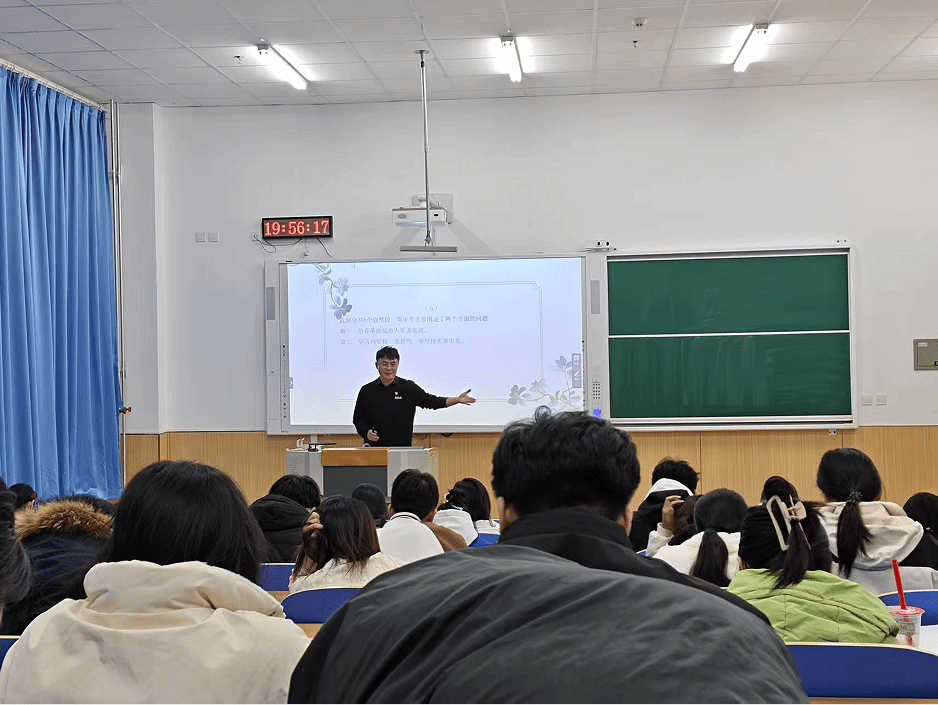 《在武昌、深圳、珠海、上海等地的谈话要点》即“南方谈话”,是邓小平同志在1992年视察南方期间发表的重要讲话,明确回答了当时困扰和束缚人们思想的若干重大问题。石儒标以深厚的理论功底和严谨的治学逻辑,从文献的社会历史背景、历史地位与现实意义和主要思想内容三个维度,结合新时代推进高质量发展、全面深化改革的现实需求,对《在武昌、深圳、珠海、上海等地的谈话要点》进行全方位解读。他指出重温这篇经典文献,能帮助青年学子深刻理解改革开放作为决定当代中国命运的关键抉择的重要意义,把握中国特色社会主义发展逻辑,进一步坚定改革发展信心,掌握“解放思想、实事求是”的思想武器。讲座最后,他鼓励同学们要善于从经典文献中汲取智慧,将“大胆地试、大胆地闯”的奋斗精神融入专业学习与社会实践。