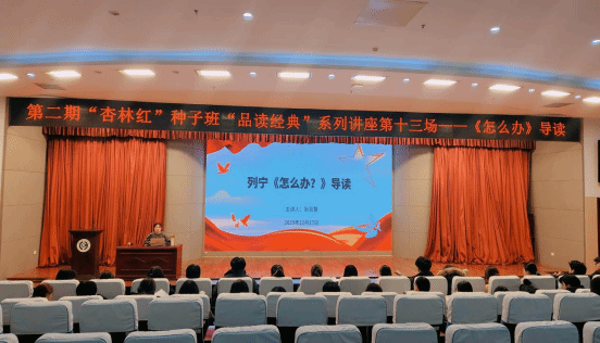 12月17日晚,第二期“杏林红”种子班第十三场“品读经典”研学活动在仁和楼学术报告厅顺利举行。本次讲座特邀思想政治课教学部张百慧老师担任主讲人,围绕《怎么办?》开展专题导学,种子班全体成员及部分指导教师参与研学。