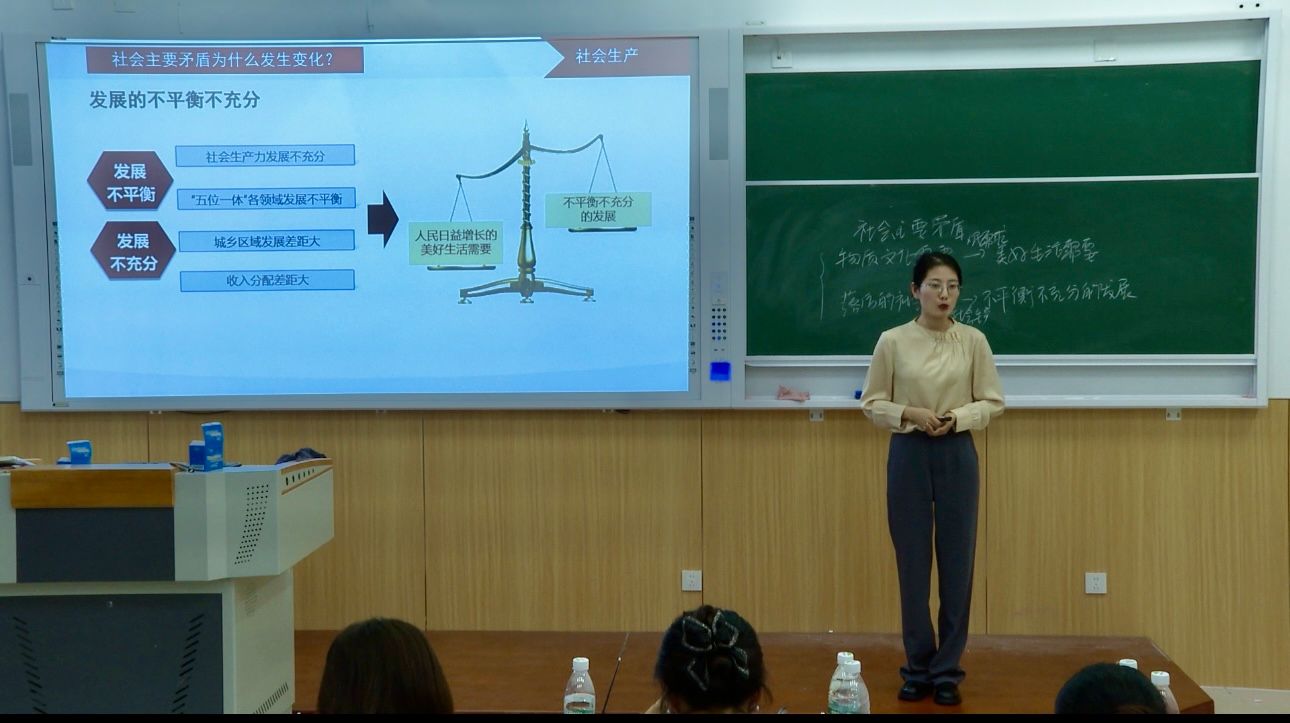 比赛过程中,张媛老师讲授的《45°青年:以奋进姿态激扬青春》紧贴新时代青年学生实际,赵晓静老师讲授的《社会主要矛盾发生变化》融合社会热点话题,反映时代前沿,参赛教师巧妙地结合了各自课程的特点,对教学内容、环节设计等作了精心准备,授课逻辑清晰,教学手段多样,教态自然,语言生动,表现出了较高的教育教学水平。