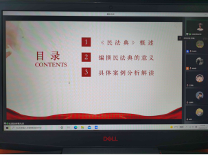 5月17日下午,思政部党支部举行线上专题党课,支部党员张潇同志围绕民法典相关内容进行了主题讲授,党支部书记韩晓昌主持会议。