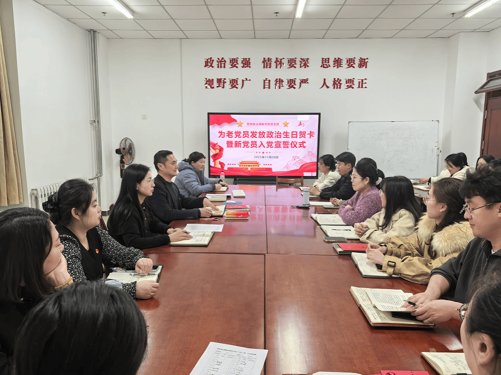 活动现场,温馨与庄重交织。支部为老党员发放精心准备的政治生日贺卡,贺卡上的党徽和祝福语,承载着党组织的关怀。老党员接过贺卡,自豪与感动溢于言表。随后,新党员入党宣誓仪式庄重举行,他们面向党旗,眼神坚定、声音洪亮,许下为共产主义奋斗终身的誓言。老党员们分享自身经历与感悟,鼓励新党员“不忘初心、牢记使命”,在岗位上发光发热。