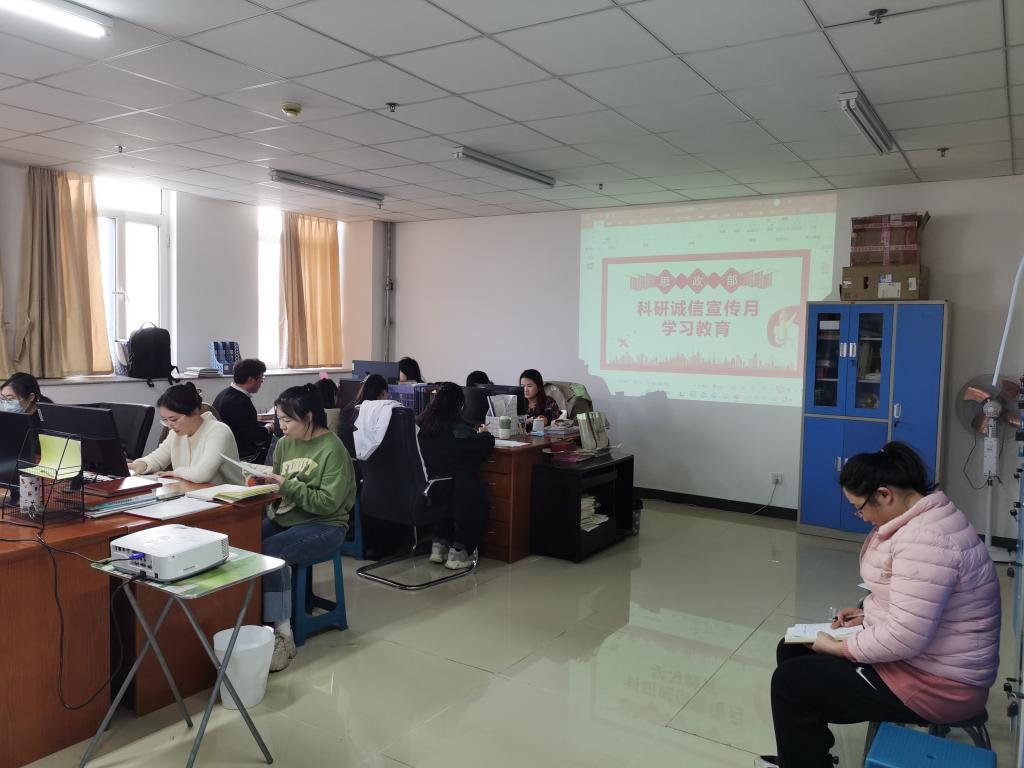 会上首先由周庆强副教授带领大家集体学习了《科研失信行为调查处理规则》、《高等学校预防与处理学术不端行为办法》等法规文件,并详细讲解了在论文发表、课题申报、资金使用过程中可能出现的科研诚信问题。接着,韩晓昌主任结合近年来社会上出现的学术不端案例,要求全体教师要树立诚信为本意识,在日常科研活动中坚守学术诚信,培育良好师德师风。