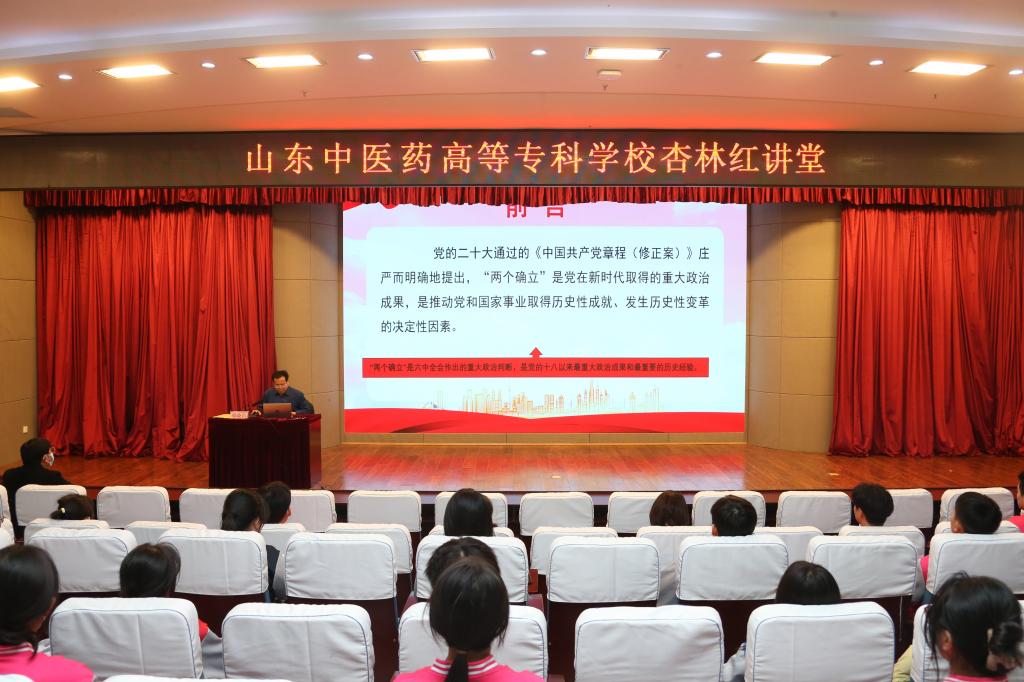 12月7日下午,思政部首场“杏林红讲堂”专家讲座在综合楼学术报告厅举行。思政部党总支书记、主任韩晓昌为杏林红种子班全体学员作了《捍卫“两个确立”,争做“两个维护”的实践者》的报告。