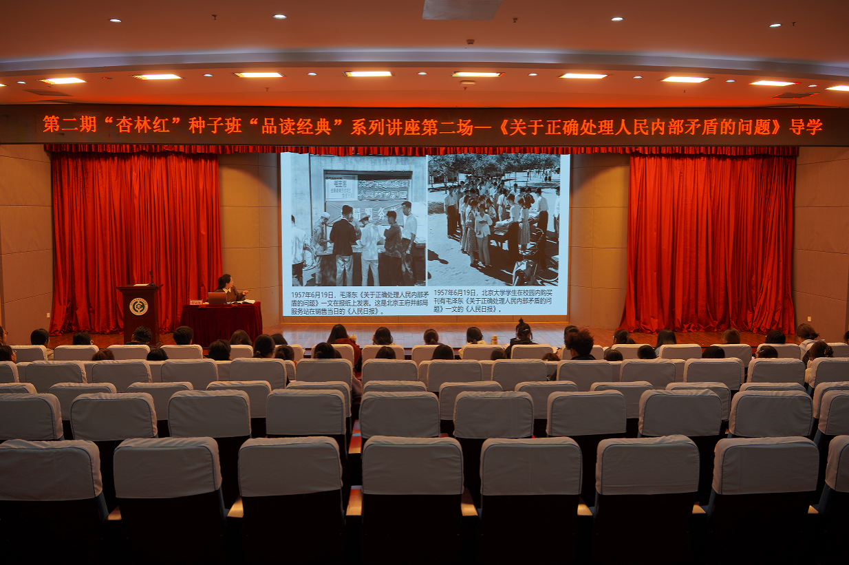 4月2日晚,第二期“杏林红”种子班“品读经典”系列讲座第二场在综合楼学术报告厅圆满结束,第二期杏林红种子班全体成员及指导教师参加。思政部舒冠凤副教授作专题导学,主题为重读《关于正确处理人民内部矛盾的问题》。