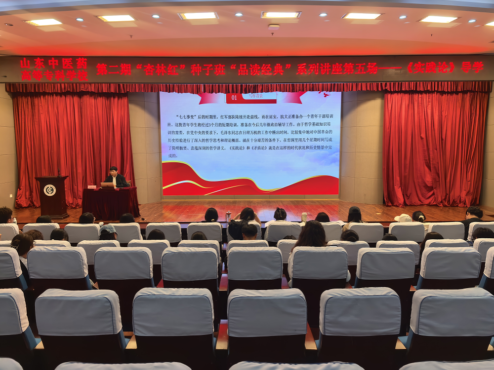 5月21日晚,第二期“杏林红”种子班“品读经典”系列讲座第五场在仁和楼学术报告厅火热开展。思政课教学部刘俊利老师以毛泽东哲学著作《实践论》为轴心,带领60余名种子班学员穿越时空,探寻“实践出真知”的思想密码,为中医药学子注入“知行合一”的精神动能。