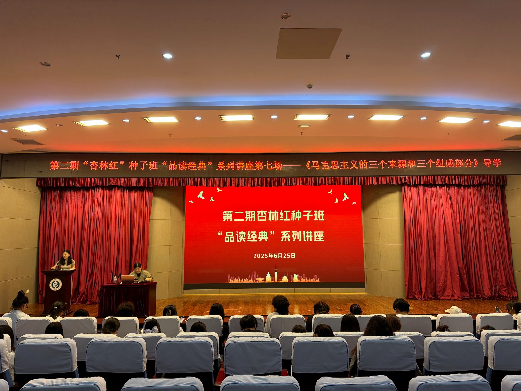 6月25日,学校第二期“杏林红”种子班“品读经典”系列讲座第七场在仁和楼学术报告厅成功举办。本次讲座聚焦经典著作《马克思主义的三个来源和三个组成部分》,由思政课教学部王雪副教授主讲。