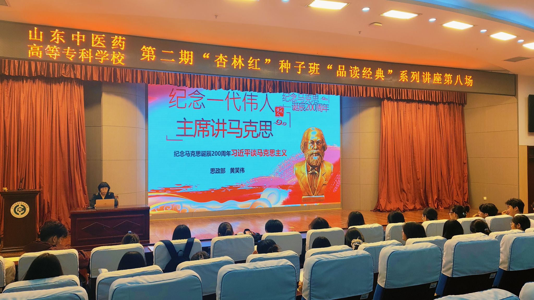 9月24日晚,第二期“杏林红”种子班第八场“品读经典”研学活动在仁和楼学术报告厅圆满结束,种子班全体成员及指导教师参加。思政课教学部黄笑伟教授作专题导学,主题为重读《在纪念马克思诞辰200周年大会上的讲话》。