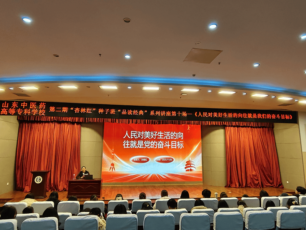 11月5日,学校第二期“杏林红”种子班“品读经典”系列讲座第十场在仁和楼学术报告厅成功举办。本次讲座聚焦《人民对美好生活的向往就是我们的奋斗目标》这一核心主题,特邀思政课教学部孙晓红副教授担任主讲嘉宾。