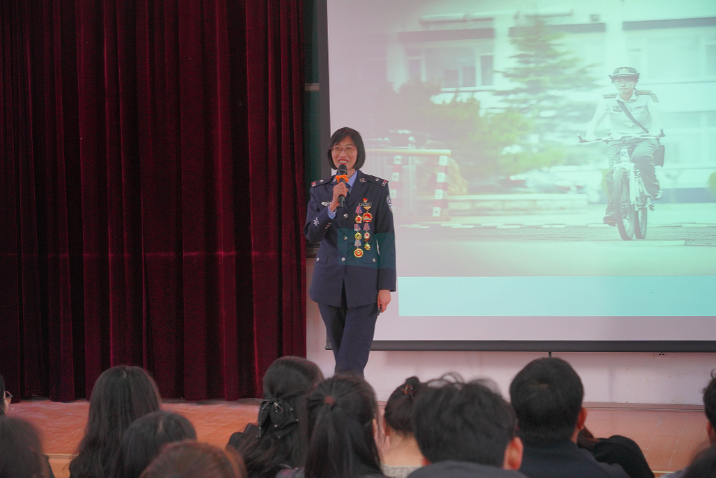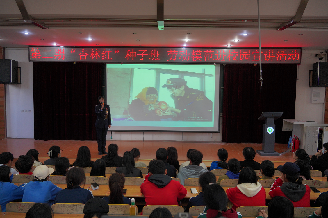 在第135个国际劳动节到来之际,为大力弘扬和践行劳模精神、工匠精神,4月22日下午,杏林红种子班在教学楼102教室开展劳模精神进校园宣讲活动。“全国优秀人民警察”“全国巾帼建功标兵”“山东省先进工作者”“山东省五四青年奖章”获得者,烟台市公安局牟平分局养马岛海岸派出所二级警长曹园媛警官来校宣讲。杏林红种子班全体学员、全体思政课教师参加活动。思政课教学部副主任周庆强主持活动。