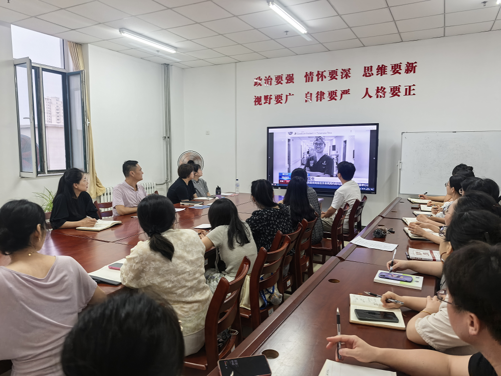 张军桥同志是山东第二医科大学附属医院麻醉科副主任医师、第27批援坦桑尼亚中国医疗队队长。2025年6月,他在坦桑尼亚达累斯萨拉姆市为抢救落水民众英勇牺牲,年仅38岁。活动中,教师们通过观看事迹短片、研读报道材料,深入了解了他抗疫期间主动捐赠物资、援非期间培训当地医护、为患儿取名“齐鲁”等感人故事。张军桥同志以生命践行使命、用大爱跨越山海的精神,深深触动了每一位教师,现场不时响起热烈掌声。