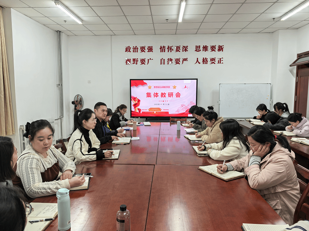 11月11日下午,思政课教学部在综合楼715组织开展集体教研活动。本次活动中,《形势与政策》教研室教师宿洁结合参加2025年山东省高职思想政治理论课教学能力提升培训班时的所学所悟,为全体思政课教师作了一场内容扎实、实用性强的经验分享。